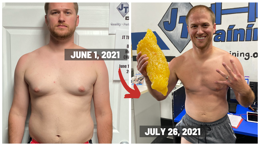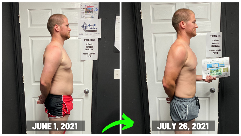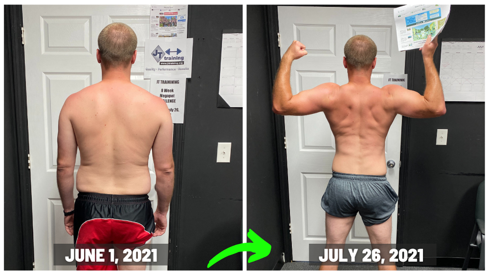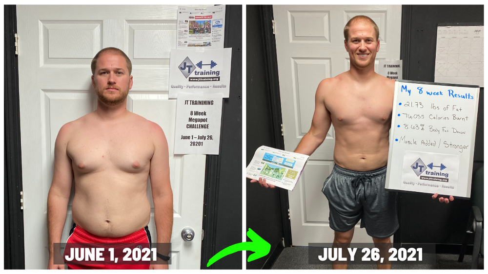 "Since joining JT TRAINING, I have gained a ton of energy back! I did not realize how sluggish I was until I finally took the leap and and joined the 8 Week Challenge and got back into SHAPE! My back and shoulder pain has gone away since beginning the program. This gives me more motivation to do activities with my family and my kids. The comradery betwen the JT TRAINING family and trainers is great! The trainers push and hold everyone accountable with every move we make. Being at JT TRAINING motivates me to keep pushing and gets me out of my comfort zone with new fun challenges daily that anyone can do. This has helped me lose the weight that I have been wanting gone for years. My clothes fit and feel so much better than before. I am so happy I decided to join and you should to!"
